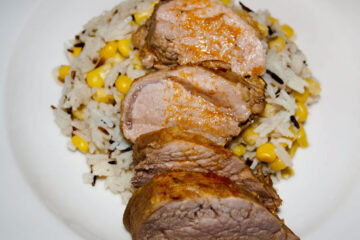 Honig-Schweinefilet mit knackigem Reis-Mais