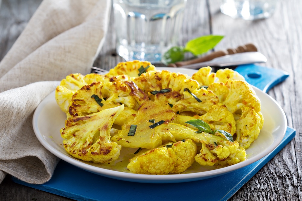 Servieren: Die gegrillten Blumenkohlsteaks auf eine Servierplatte legen, mit frischer Petersilie oder Koriander garnieren und mit Zitronenspalten servieren. Die Zitrone kann nach Belieben über die Steaks gepresst werden, um einen zusätzlichen Frischekick zu geben. Genießen Sie Ihre gegrillten Blumenkohlsteaks mit Kurkuma als köstliche Beilage oder auch als Hauptgericht!