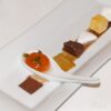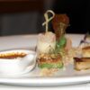 Die Vorspeise geht dann schon richtig in „die Vollen“ und präsentiert sich mit einer Variation von der Leber. Um das Kind beim Namen zu nennen sind dies: Gebratene Stopfleber, Leber Crème brûlée, Lebereis, Törtchen von Leber, grünem Äpfel und Haselnuss, Lolly von Leber und Birne, Mouse Ring von Leber und Schokolade, Apfel Chutney, Apfel Gel, Brioche auf Apfel Saft-Basis und Geschmorte Linsen.